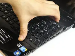 Будьте осторожны, чтобы не сломать защёлки, которыми клавиатура крепится к ноутбуку.