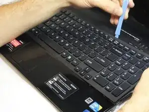 Если удалить клавиатуру руками трудно, используйте пластиковый инструмент для открытия.