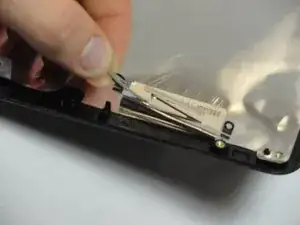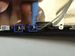 Отогните металлический клапан под веб-камерой с помощью пластикового монтажного инструмента.