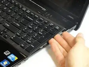 После удаления оптического привода найдите кнопку выброса клавиатуры и нажмите на неё, пока не услышите щелчок.