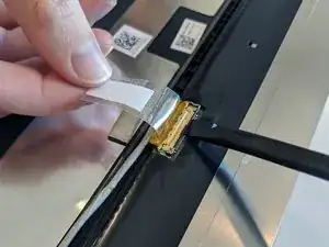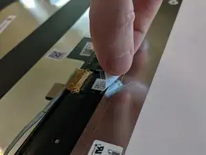 Отклейте наклейку, фиксирующую кабель дисплея к ЖК-панели.