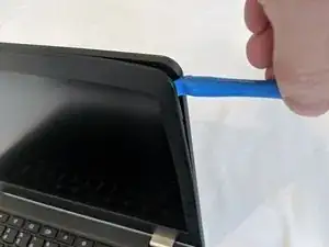 Используйте пластиковый инструмент для открывания, чтобы поддеть панель и отцепить её от узла дисплея.