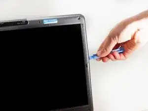 Используйте пластиковый инструмент для открытия, чтобы отделить переднюю пластиковую панель от задней стороны верхней части ноутбука.