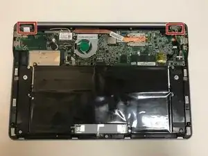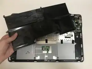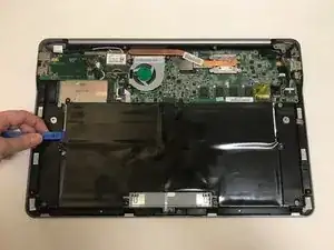 Используйте пластиковый инструмент или пальцы, чтобы приподнять аккумулятор и вынуть его из ноутбука.
