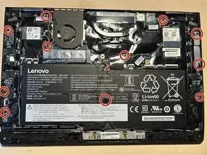 Начните с переворачивания ноутбука и ослабьте все девять винтов. Они должны остаться в крышке корпуса.