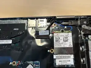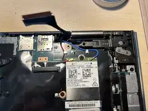 Если у вас установлен модуль LTE, как у меня, отключите два разъёма с помощью пинцета, при этом не повредите кабели и разъёмы.