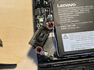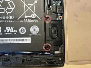 Если ещё не сделано, открутите два винта, удерживающие правый динамик.