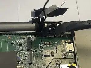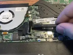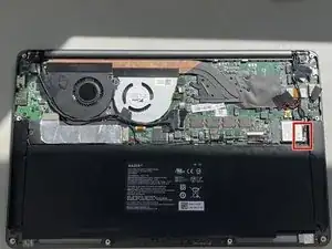 Используйте ноготь, чтобы приподнять и отключить батарею от материнской платы.