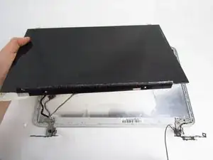 Осторожно отделите верхнюю часть ноутбука с петлями от нижней половины, потянув вперед и вверх.