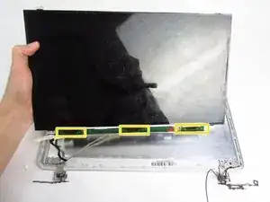 Снимите белый видеочип с экрана, отогнув ленту и аккуратно потянув за белый кабель.