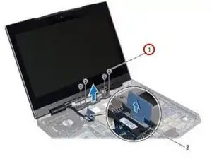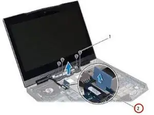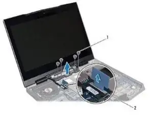 Снимите четыре винта, фиксирующие дисплейный модуль к основанию компьютера.