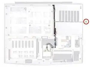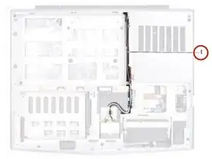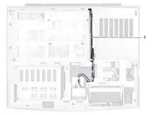Обратите внимание на прокладку антенных кабелей мини-карты и выведите их из направляющих на основании компьютера.