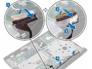 Отклейте ленту, фиксирующую кабель дисплея к системной плате.