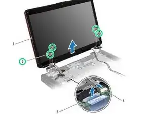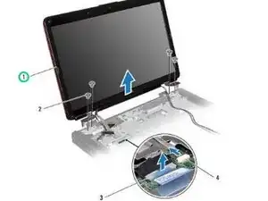 Удалите четыре винта, которые закрепляют дисплейный модуль к основанию компьютера.
