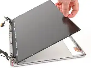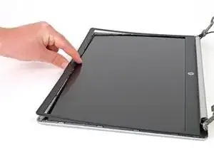 Панель дисплея закреплена растягивающимся клеем-ленточным креплением, которое может порваться, если тянуть слишком быстро или под слишком высоким углом. Тщательно следуйте инструкциям и действуйте медленно, чтобы не повредить клей.