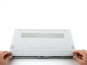 При сборке разместите нижнюю крышку на ноутбуке так, чтобы стороны крышки совмещались со сторонами ноутбука. Затем аккуратно надавите на стороны, пока не услышите щелчки защёлок. Если защёлки не защёлкиваются легко, отрегулируйте положение крышки и попробуйте снова.