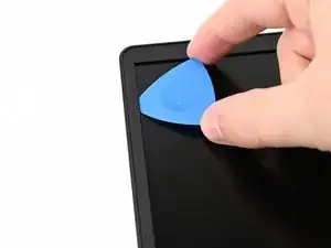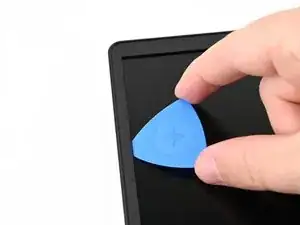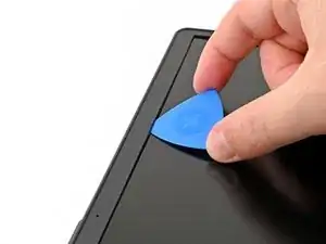 Вставьте инструмент для поддевания внутрь одной из более тонких сторон рамки дисплея, между рамкой и панелью дисплея.