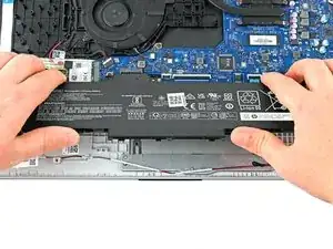 Потяните аккумулятор на себя, чтобы отсоединить его от разъёма.