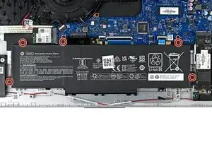 Отверткой Phillips удалите пять винтов длиной 4.3 мм, фиксирующих аккумулятор.
