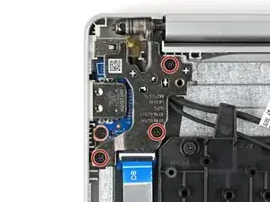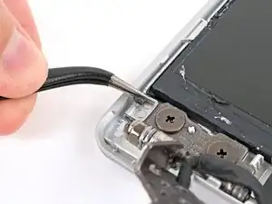 Отверткой Phillips удалите три винта длиной 5.6 мм, фиксирующие левую петлю.