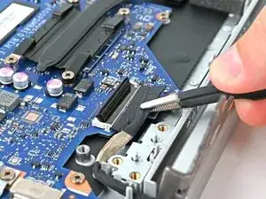 Используйте пинцет, чтобы захватить кабель дисплея и защёлку.