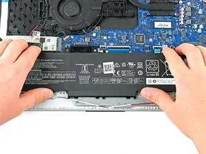 Поднимите переднюю часть аккумулятора (сторону, ближайшую к вам), пока аккумулятор не освободится с направляющих штифтов.