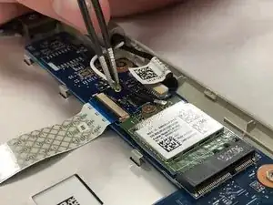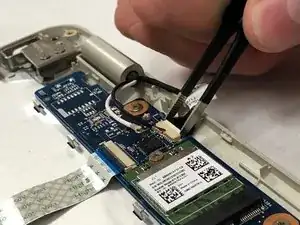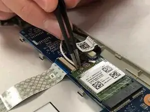 Снимите чёрный разъём веб-камеры, потянув его назад с помощью пинцета.