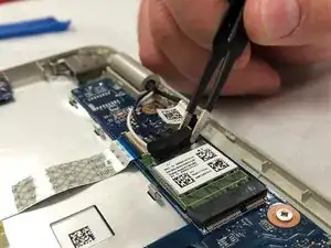 Аккуратно отсоедините батарею от материнской платы устройства.
