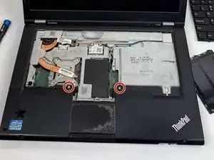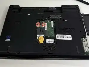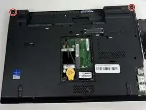 Снимите два винта из верхних углов ноутбука с помощью отвертки Phillips #000.