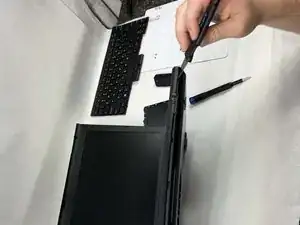 Поднимите дисплейный узел от остального устройства и уберите в сторону.