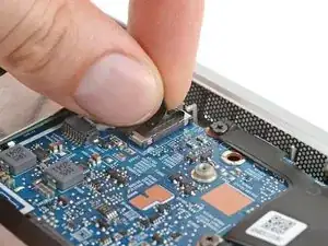 Используйте пинцет или пальцы, чтобы вытащить кабель дисплея из зажима.
