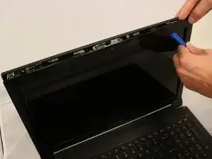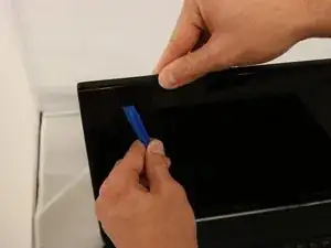 Отделите переднюю рамку от панели дисплея с помощью пластикового инструмента для открывания, аккуратно поддевая по краям и снимая её.