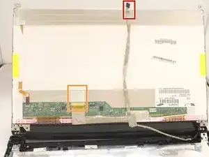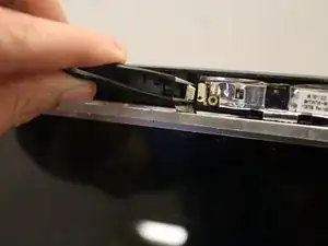 Отогните плоский кабель с ZIF‑разъемом камеры, пока он не освободится от задней стороны дисплея.