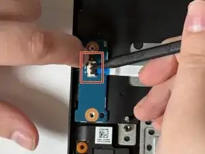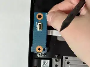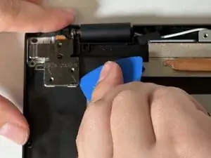 С помощью монтажной лопатки iFixit подденьте шарнир, удерживающий дочернюю плату.