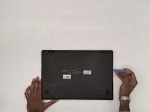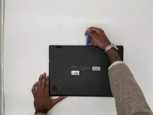Вставьте инструмент для открытия в шов между нижним корпусом и шасси.