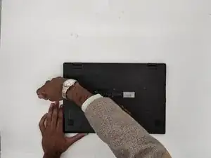 Разместите ноутбук так, чтобы нижняя часть смотрела на вас.