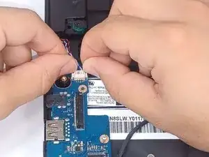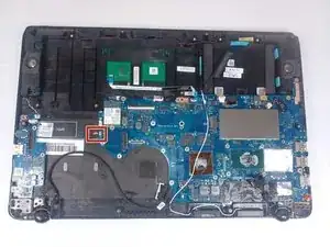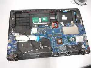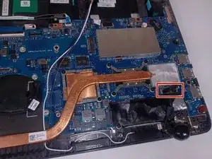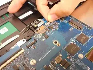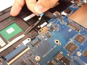 После того как все винты и кабели будут отсоединены, выньте сборку вентилятора из ноутбука.
