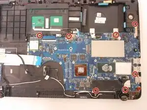 Снимите семь винтов, крепящих материнскую плату, крестовой отверткой Phillips #0.