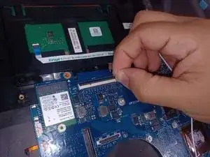 С помощью пальца отожмите язычок, удерживающий светло‑голубой шлейф, и отведите его в сторону.