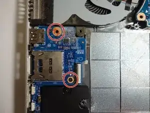 Это руководство по замене относится к дочерней плате ноутбука HP Envy x360 m6-w103dx. На дочерней плате находятся порт USB и слот для карты SD.