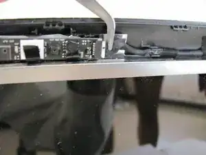 Удалите 2 куска черной изоленты с помощью острого инструмента, чтобы освободить плату камеры, обратите внимание, что плата камеры все еще подключена к кабелю.