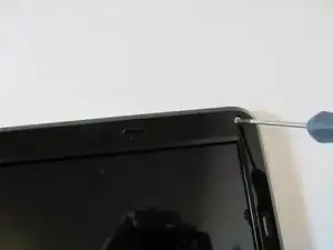 С помощью мягкого пластикового инструмента осторожно откройте сборку дисплея ноутбука, методично поддевая слева направо. Будьте осторожны, чтобы не повредить какие-либо внутренние схемы.