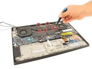 Ослабьте пять винтов, крепящих вентилятор к материнской плате, используя отвёртку Philips #00.