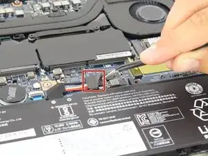 Используйте лопатку или ноготь, чтобы аккуратно поддеть аккумулятор и поднять его вертикально от материнской платы.