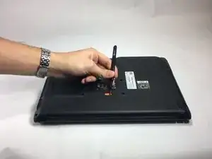 Переверните ноутбук, чтобы увидеть его нижнюю сторону.