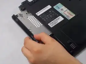 Удерживая переключатель освобождения вправо, вытяните батарею на себя.