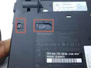 Сдвиньте и удерживайте два фиксирующих защёлки в положение «отпущено».