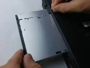 Держа защёлки в этом положении, вытяните DVD-привод из отсека и извлеките его из устройства.