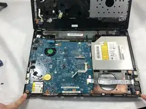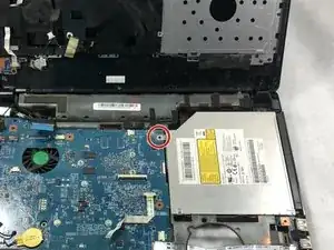 Снимите винт, который соединяет DVD-привод с материнской платой, и выдвиньте DVD-привод.