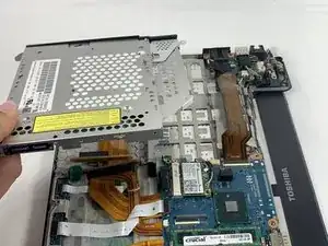 В ноутбуке Toshiba Portege R705-P35 установлен DVD-привод для загрузки и воспроизведения видеофайлов. Если диск не воспроизводится даже после очистки, возможно, потребуется заменить DVD-привод по этому руководству. Привод расположен с левой стороны устройства при открытом ноутбуке в стандартном положении. К приводу можно легко получить доступ, сняв заднюю панель. Обязательно сохраните все винты и металлическую пластину для удобной повторной установки. При подключении ленточного кабеля убедитесь, что он полностью вставлен.